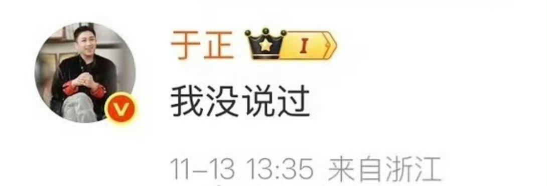可没想到,随着赵樱子的言论在网上发酵,于正直接在相关微博评论区回复了三个字——“我没说过”!